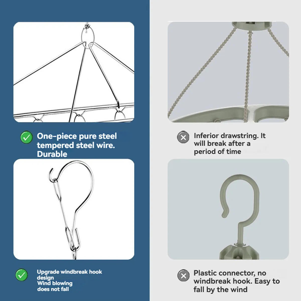 Com múltiplos prendedores integrados, este varal facilita a secagem de peças menores sem ocupar muito espaço. Seu formato suspenso permite aproveitar melhor áreas como varandas, lavanderias ou até mesmo ambientes internos.
