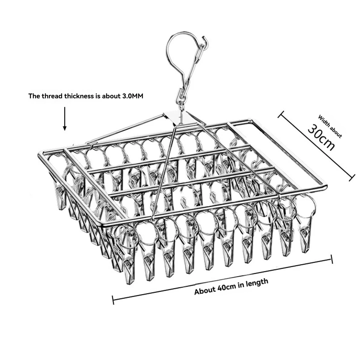 Varal de Roupas em Aço Inoxidável com 40 Prendedores